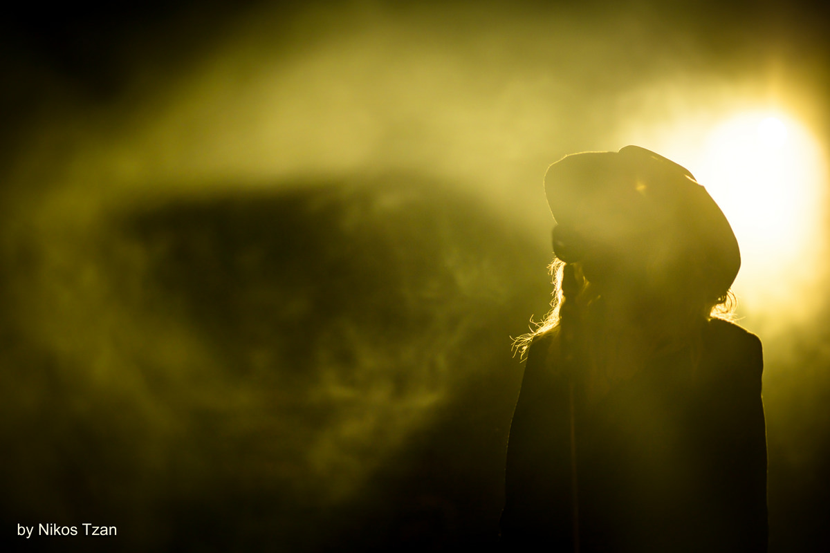 Φωτογράφιση από νυχτερινή συναυλία. Εδώ βλέπετε κοντινό πορτραίτο από τον τραγουδιστή.