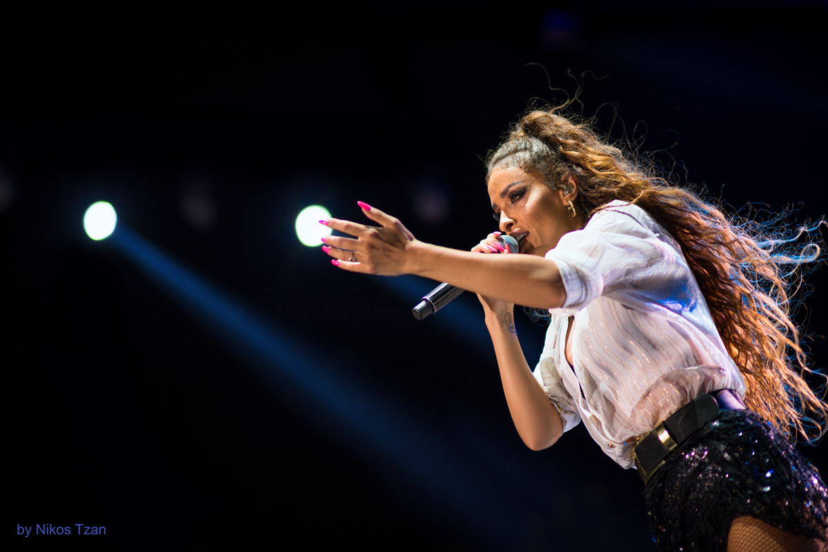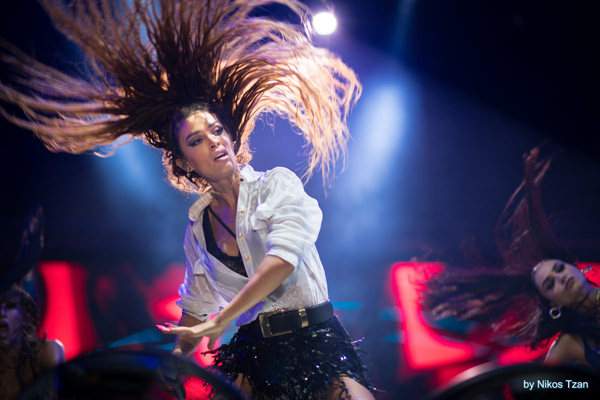 Από την συναυλία της Φουρέιρα στην Διεθνή Έκθεση Θεσσαλονίκης, το βράδυ του Σαββάτου 15 Σεπτεμβρίου 2018. Πανέμορφη και με απίστευτη ενέργεια πάνω στην σκηνή, μάγεψε το κοινό της. Εδώ εκτελεί την χαρακτηριστική της κίνηση με το τίναγμα των μαλλιών της προς τα πίσω.