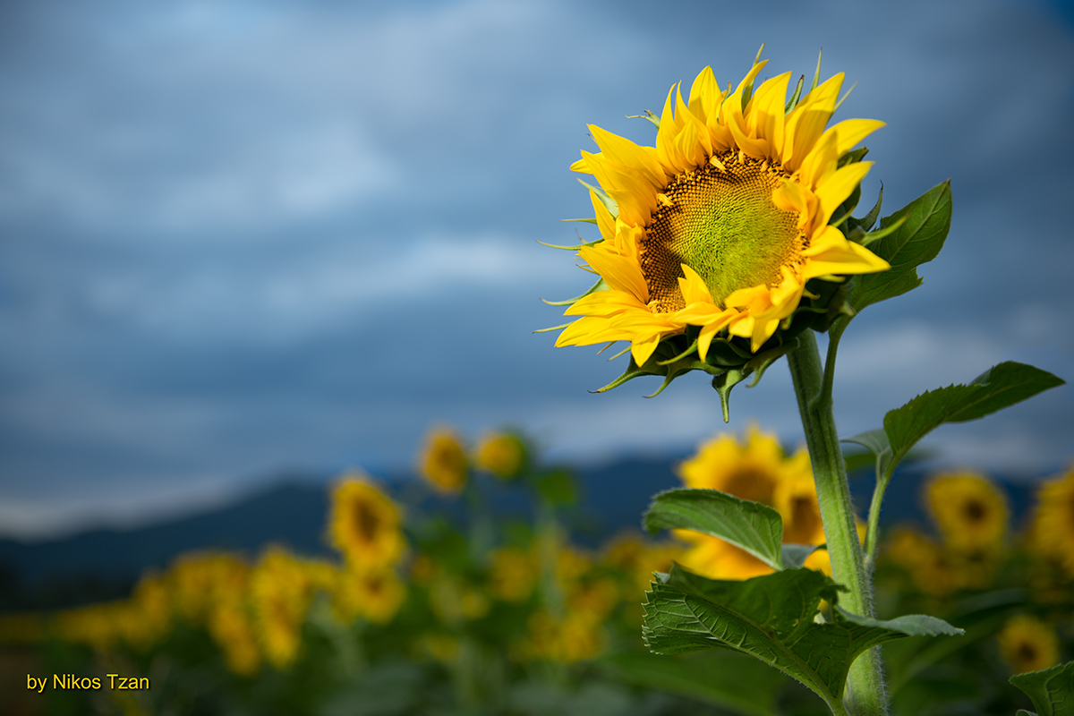 Φωτογράφιση ηλιοτρόπιων στη φύση, με έναν ιδιαίτερο ουρανό. ——————– Σώμα η Nikon D850 και φακός ο Nikon 24-70mm f/2.8G