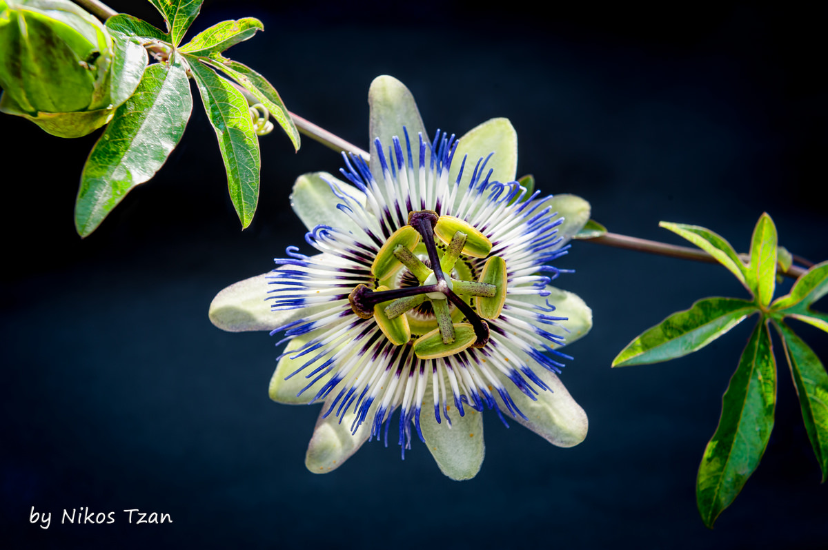 Φωτογράφιση του φυτού Πασιφλόρα (Passiflora) ή ρολογιά, ένα αναρριχώμενο φυτό με εντυπωσιακά λουλούδια. Ονομάζεται στην καθομιλούμενη ως ρολογιά, γιατί έχει σχήμα που θυμίζει έντονα ρολόι.