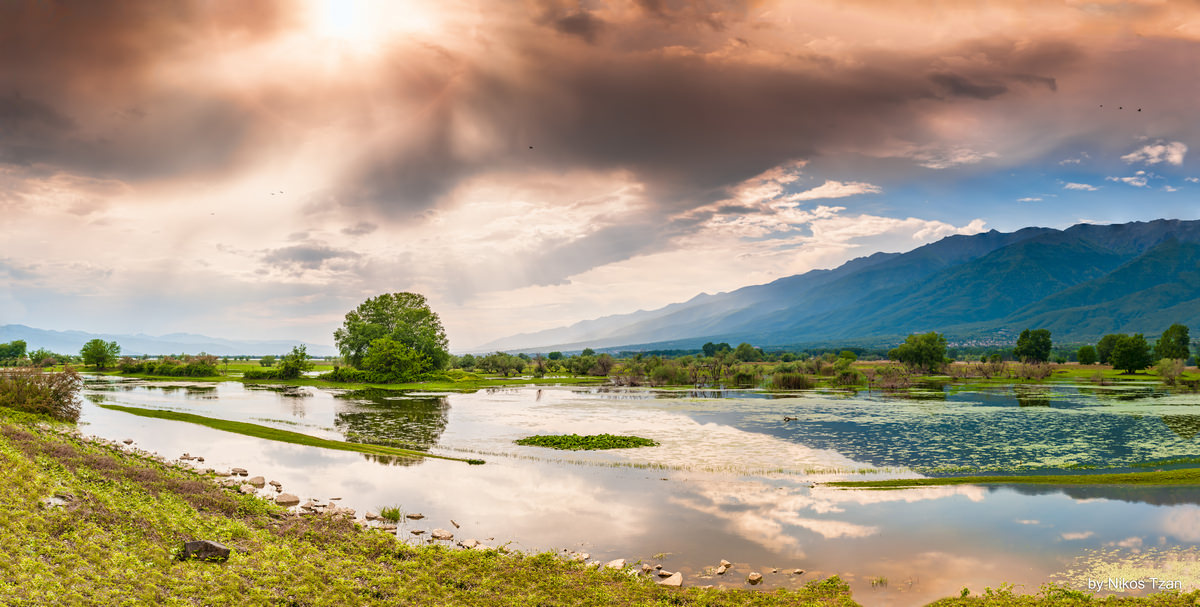 Πανοραμική λήψη ενός πανέμορφου τοπίου στη λίμνη Κερκίνη (Νομός Σερρών).