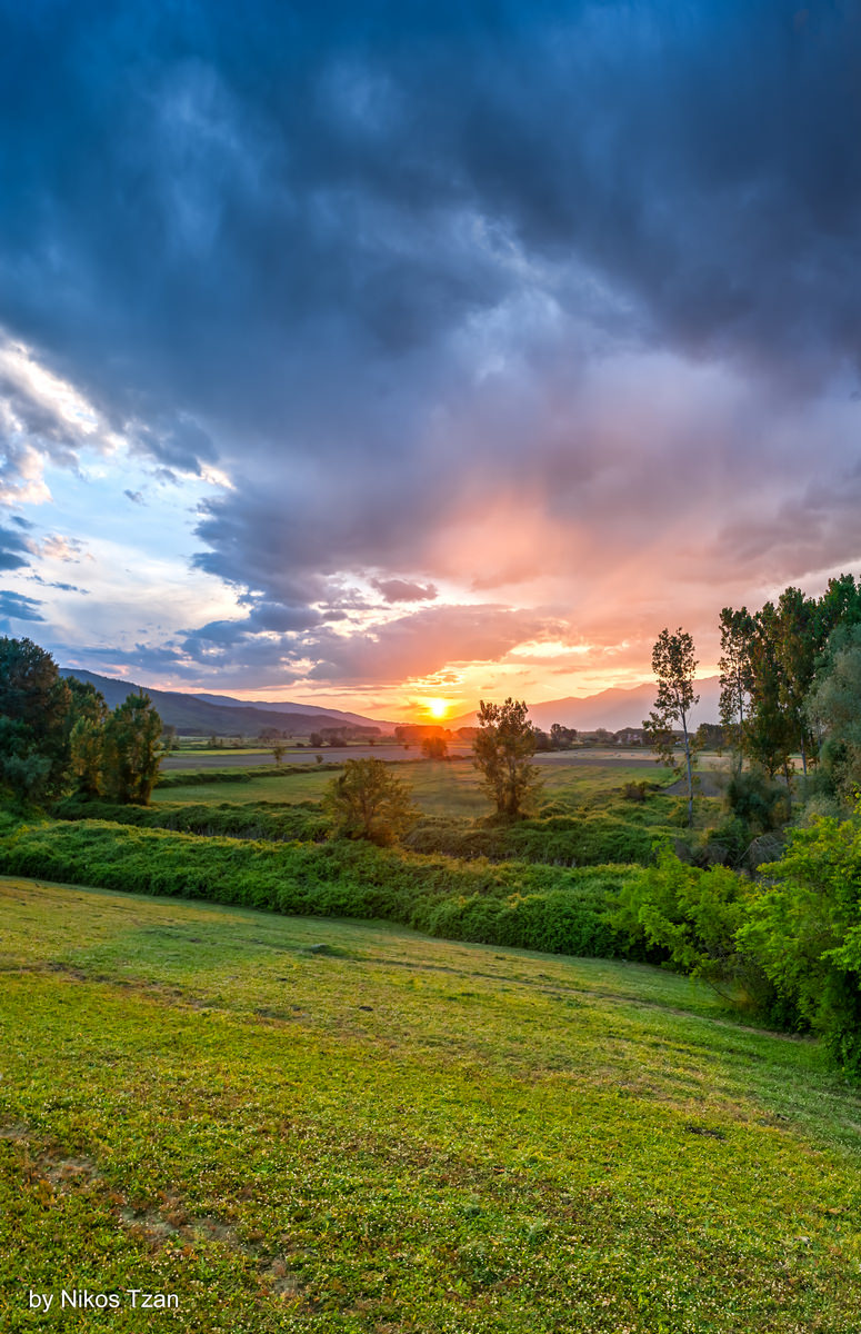 Πανοραμική φωτογράφιση HDR ενός τοπίου, κατά την διάρκεια της δύσης του ηλίου.