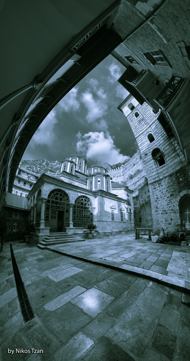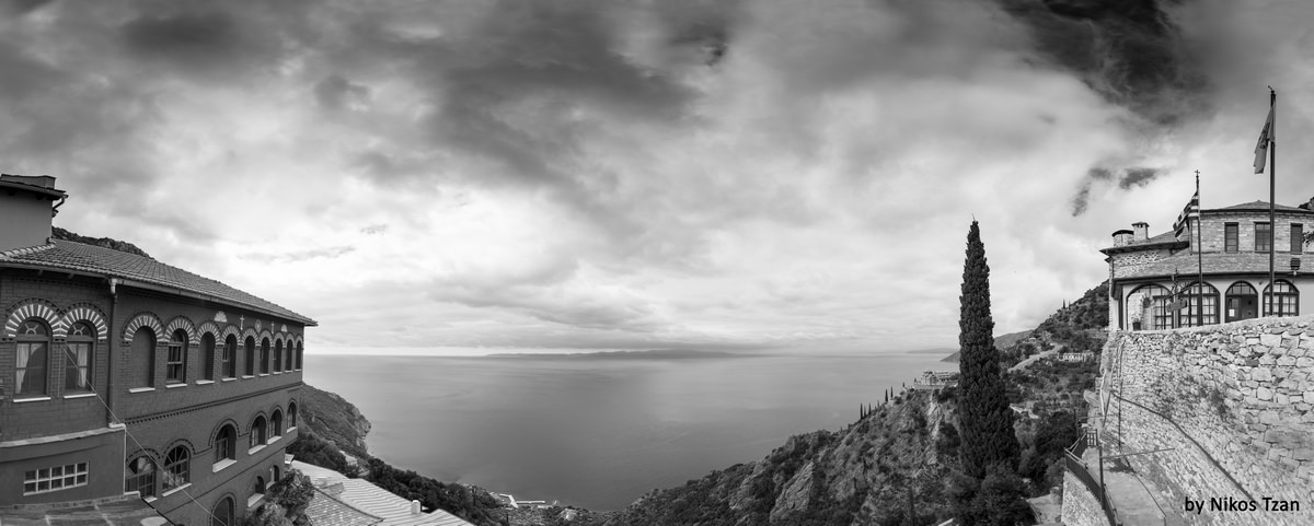 Πανόραμα της πανέμορφης μονής του Αγίου Όρους, με συρραφή πολλών λήψεων ανάλυσης 143 Megapixels, που προσφέρουν συγκλονιστική ανάλυση, ευκρίνεια και λεπτομέρεια. Σώμα η Nikon D700 και φακός ο Nikon 70-200mm f/2.8 G VR2