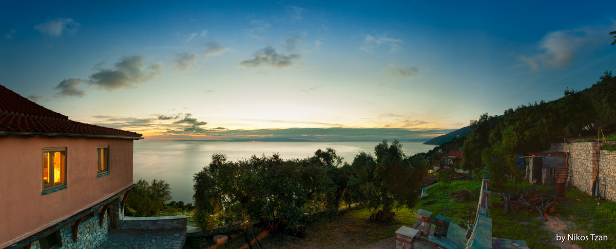 Πανοραμική λήψη από τη Σκήτη του Γέροντα Ιλαρίων, στο Άγιο Όρος.