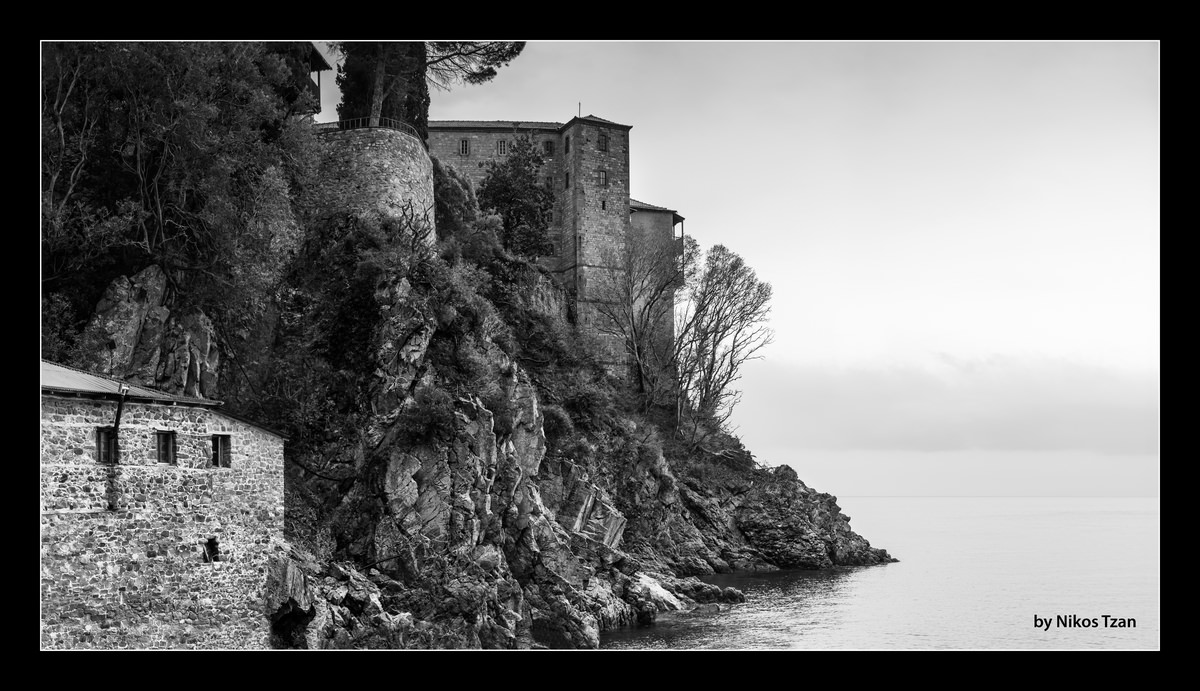 Κάθετο υπερευρυγώνιο πανόραμα, από την Ιερά Μονή Αγίου Παύλου στο Άγιο Όρος.