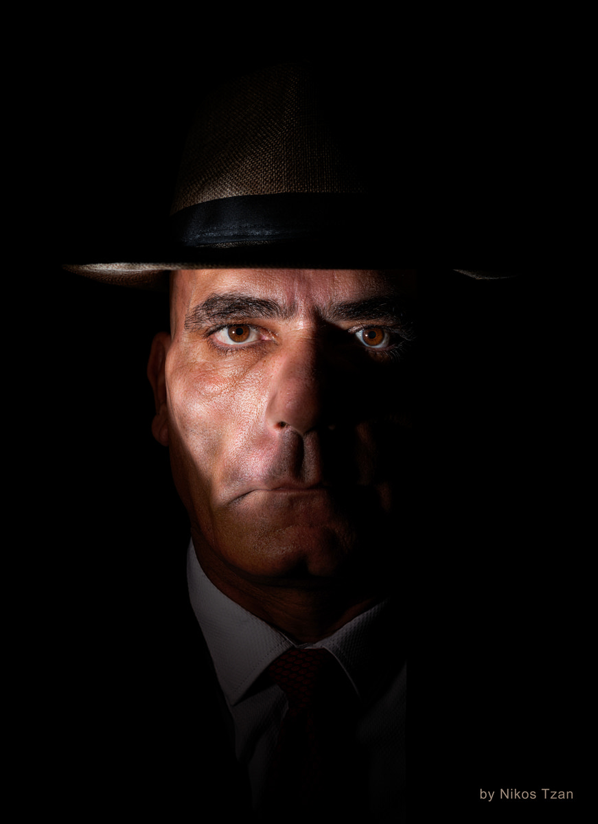 The Killer of the Mafia Το τελευταίο βλέμμα που θα δεις. Φωτογράφηση Studio με χειροποίητη ιδιοκατασκευή για την διαχείριση του φωτισμού, μιας και οι έτοιμες λύσεις δεν έδιναν το αποτέλεσμα που επιθυμούσα. Εδώ να ευχαριστήσω το μοντέλο μου τον Γιώργο, που είχε την Ιώβεια υπομονή να στέκεται ακίνητος μέχρι να καταφέρω να φτιάξω τον φωτισμό…