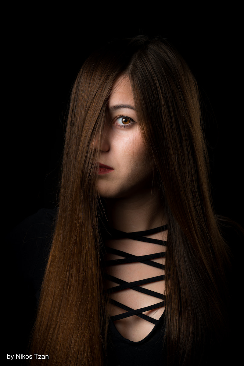 Τα μαύρα ρούχα αποτελούν την αγαπημένη επιλογή πολλών γυναικών. Προσδίδουν έναν αέρα μυστηρίου, καθώς το μαύρο αποτελεί το χρώμα του άγνωστου και της μυστικότητας, απορροφά όλα τα χρώματα και διώχνει μακριά το φως. Καλλιτεχνική φωτογράφιση πορτραίτου στο Studio. Μοντέλο: Βίνα Τσαπτσίδου