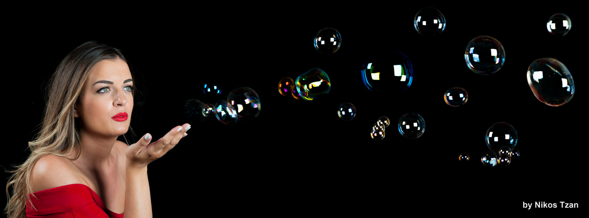 Καλλιτεχνική φωτογράφιση πορτραίτου στο Studio με… σαπουνόφουσκες. Μοντέλο: Ιωάννα Μπογιατζή