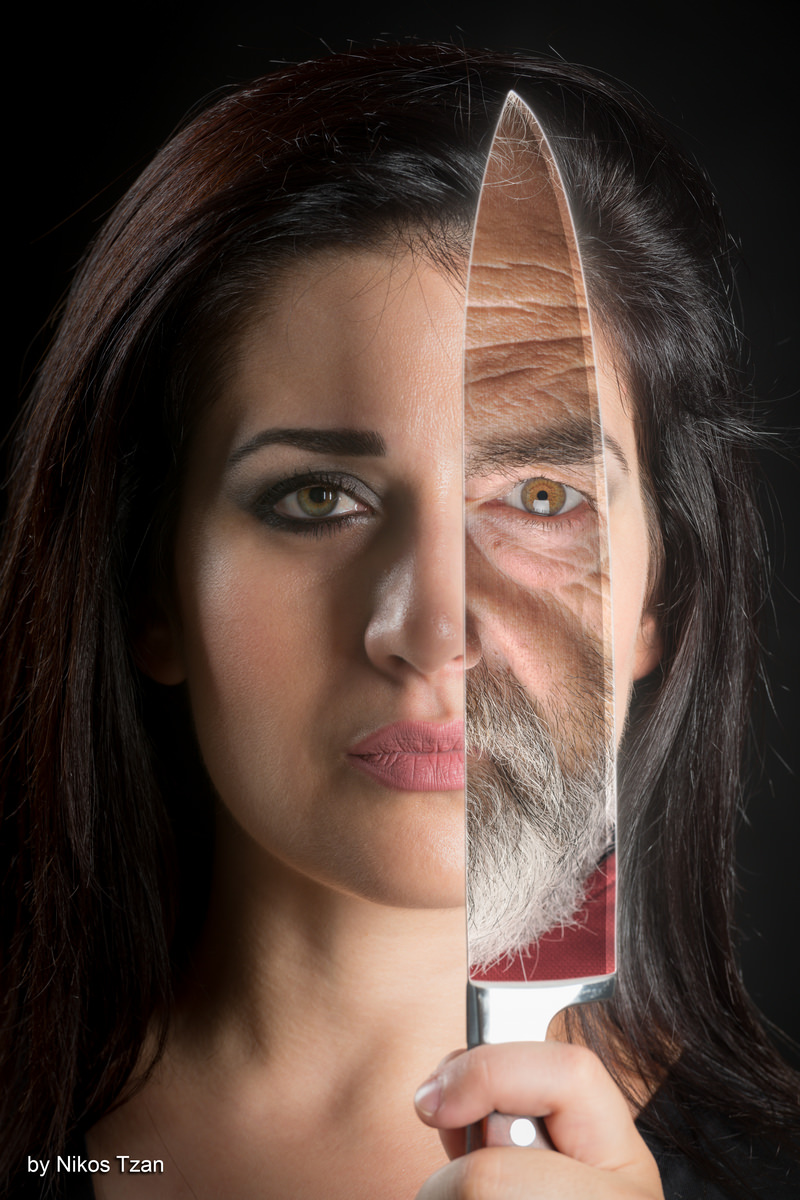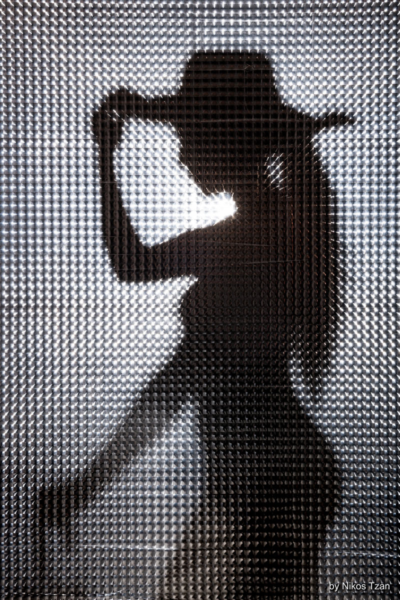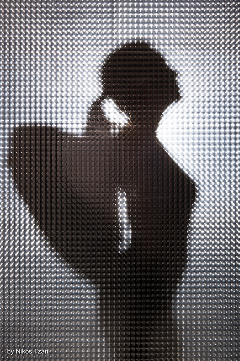 Micro Silhouettes 2 – The woman with the cane Καλλιτεχνική φωτογράφιση πορτραίτου στο Studio, στην οποία δεν έγινε κάποια ψηφιακή επεξεργασία ή εφέ. Η φωτογραφία τραβήχτηκε όπως την βλέπετε. Μόνο βασικές ρυθμίσεις (κοντράστ, φωτεινότητα, αντίθεση, χρώμα) και μια (πολύ μικρή) διόρθωση γεωμετρίας. Το εφέ που βλέπετε, δημιουργείται από πολλούς μικρούς τετράγωνους μεγεθυντικούς φακούς σε πλαστικό…