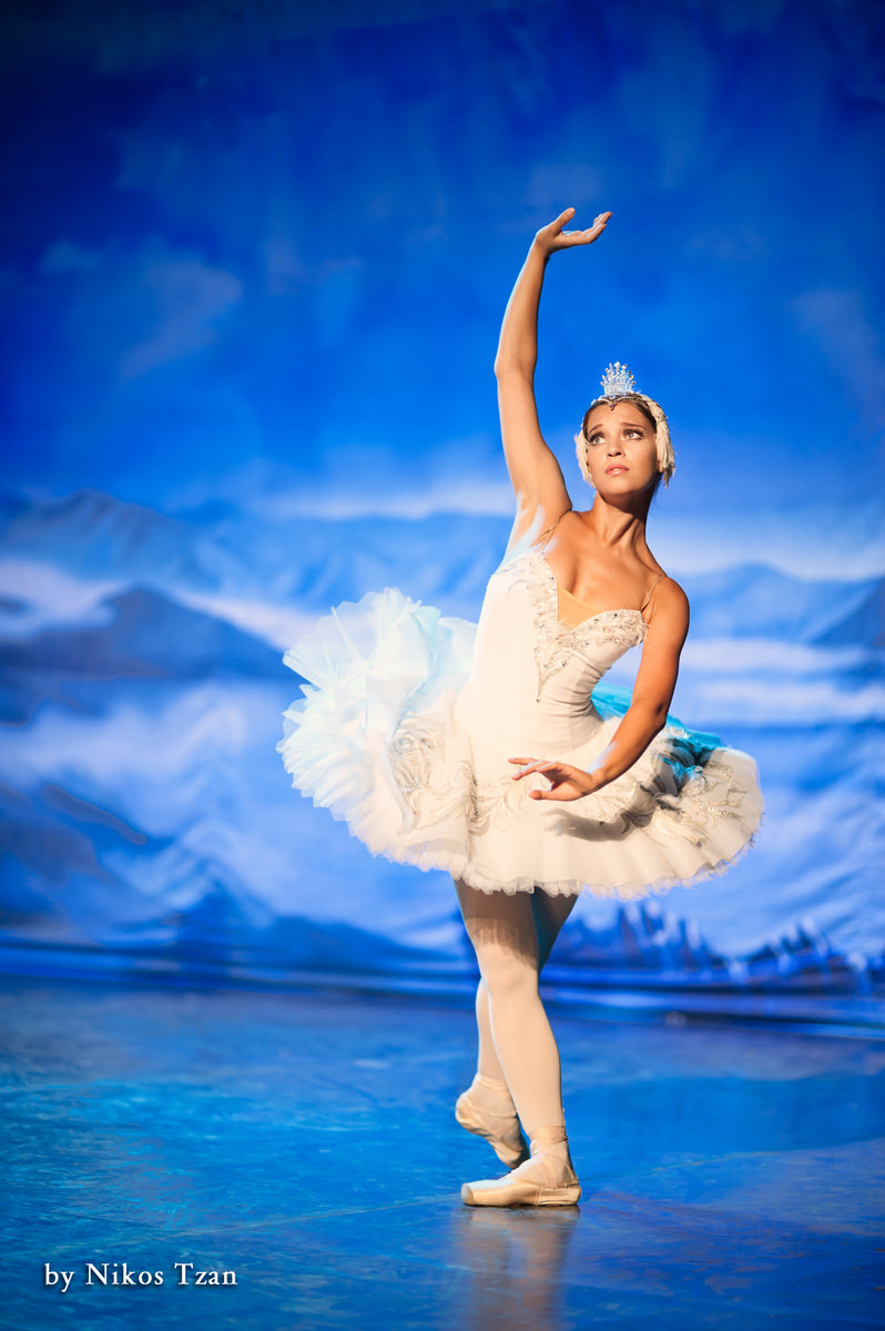 Καλλιτεχνική φωτογράφιση, από τη σκηνή της διάσημης χορευτικής παράστασης μπαλέτου “Η λίμνη των κύκνων”.