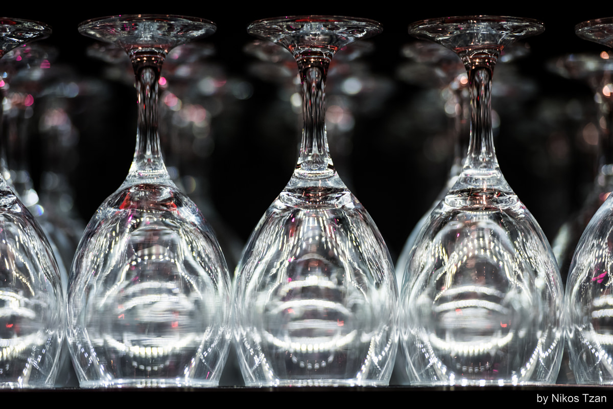 Φωτογράφιση στοιβαγμένων φρεσκοκαθαρισμένων ποτηριών σε ράφι. Σε καφετέρια όπου πήγα με παρέα για καφέ, είδα την συγκεκριμένη εικόνα με τα ποτήρια και μιας και είχα μαζί την φωτογραφική μου, δεν άντεξα στον πειρασμό και τα φωτογράφισα. Δεν είναι στημένη η εικόνα, δεν είναι φωτογράφιση Studio, δεν είναι ελεγχόμενος ο φωτισμός, απλά επέλεξα το κάδρο μου…