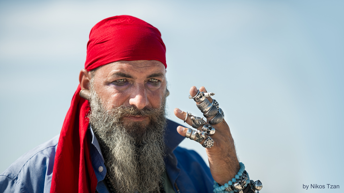 Πορτραίτο γνωστής και χαρακτηριστικής φιγούρας στο λιμάνι της Θεσσαλονίκης, όπου προμοτάρει ξύλινο καράβι καφετέρια-μπαράκι, που κάνει βόλτα στο λιμάνι.