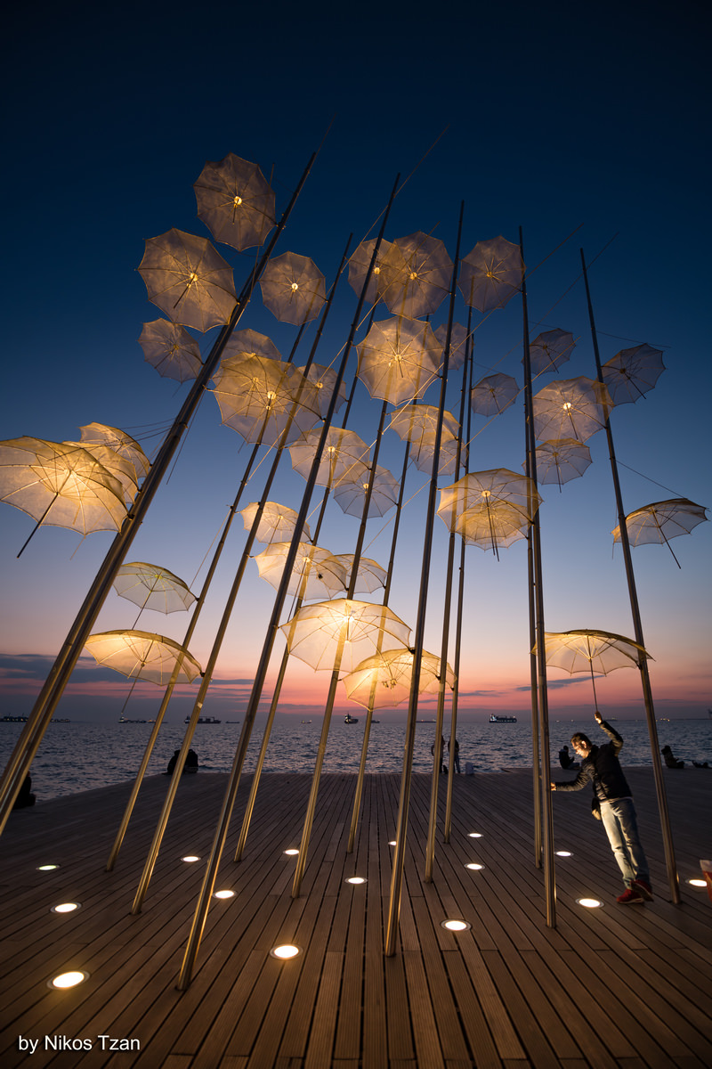 Under the umbrella Φωτογράφιση του πασίγνωστου έργου τέχνης του Ζογγολόπουλου στην παραλία της Θεσσαλονίκης, λίγο μετά το ηλιοβασίλεμα.