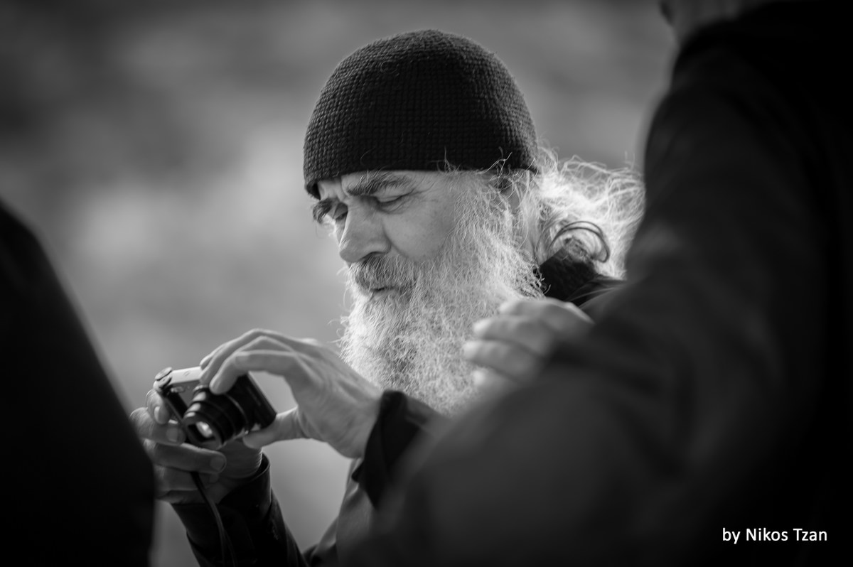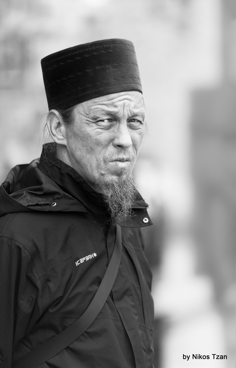 Πορτραίτο δρόμου, ενός Ιερέα που ασχολείται με την φωτογραφική μηχανή του.